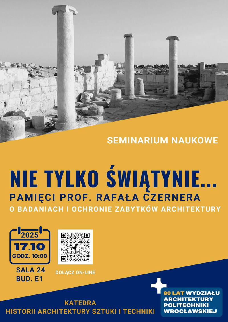 W ramach obchodów 80-cio lecia Wydziału Architektury Politechniki Wrocławskiej wspominamy twórczość i prace prof. Rafał Czernera, kierownika Katedry Historii Architektury, Sztuki i Techniki na Wydziale Architektury.