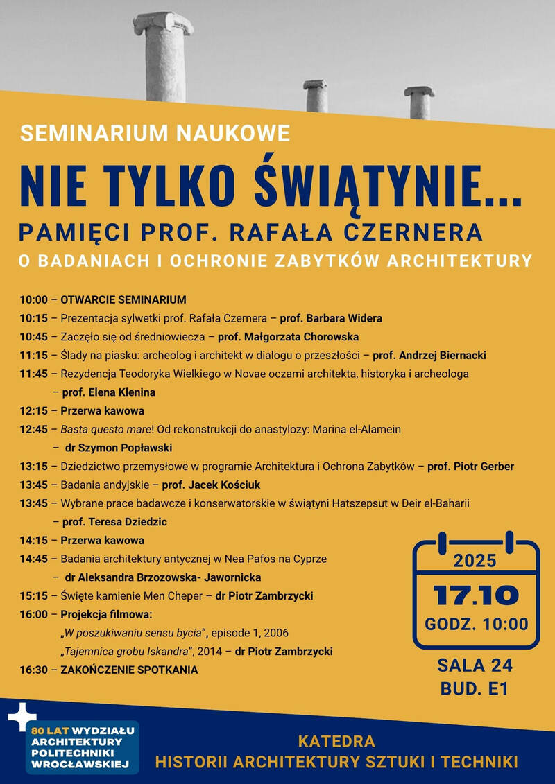 O badaniach i ochronie zabytków architektury będziemy rozmawiać 17.10.2025 o godz. 10:00 w Sali 24 (E1) Serdecznie zapraszamy.