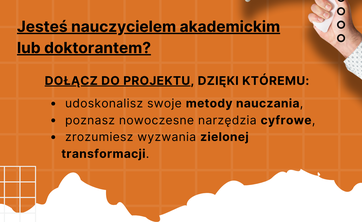 Centrum Doskonałości Dydaktycznej zaprasza do udziału w III edycji projektu „Rozwój kompetencji nauczycieli: dydaktycznych, cyfrowych i w zakresie zielonej transformacji”, którego celem jest rozwój kompetencji dydaktyków Politechniki Wrocławskiej w trzech kluczowych obszarach: dydaktycznym, cyfrowym oraz związanym z zieloną transformacją.