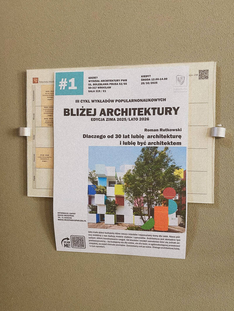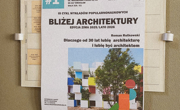 Ruszyła trzecia edycja cyklu „Bliżej Architektury” – wykładów popularnonaukowych o architektach, architekturze, urbanistyce i projektowaniu, prowadzonych przez wykładowców naszego wydziału. Spotkania skierowane są do wszystkich zainteresowanych – wczoraj odwiedzili nas uczniowie kilku liceów z Wrocławia i Oleśnicy, a pierwszy wykład pt. „Dlaczego od 30 lat lubię architekturę i lubię być architektem” poprowadził dr inż. arch. Roman Rutkowski.